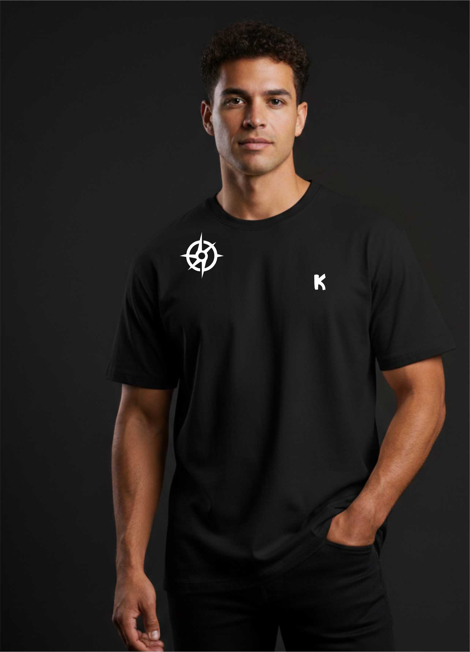 En el frente incorpora logo KAIROS en alta densidad, acompañado del emblema K bordado, sello de autenticidad y propósito.
